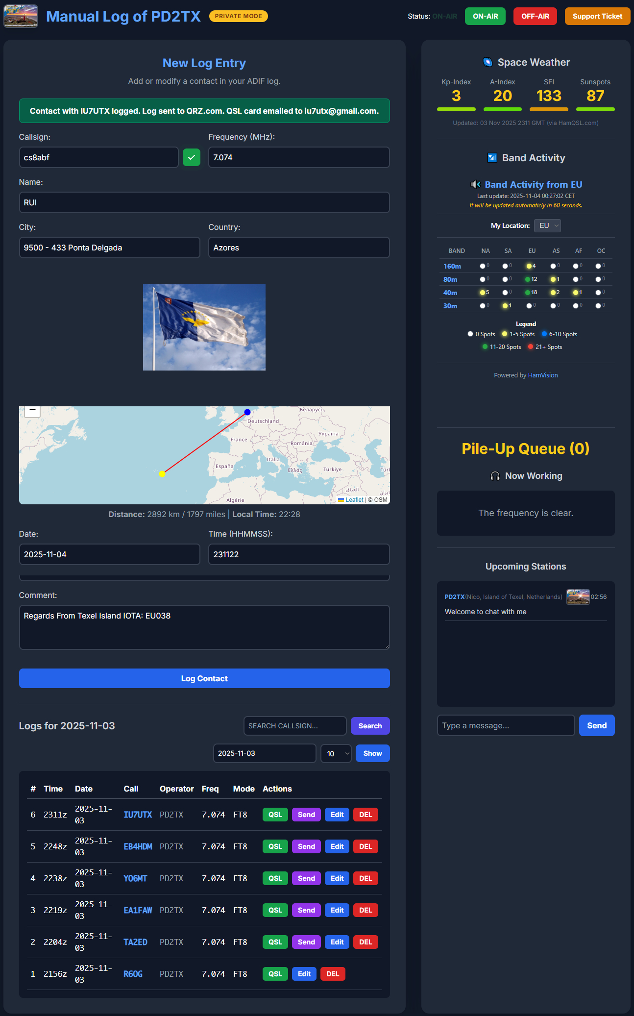 The system replaces the need for separate logging software, lookup tools, and manual QSL card processes by integrating everything into a single, secure, and interactive web page. It's designed to be the main interface an operator uses during a live radio session.